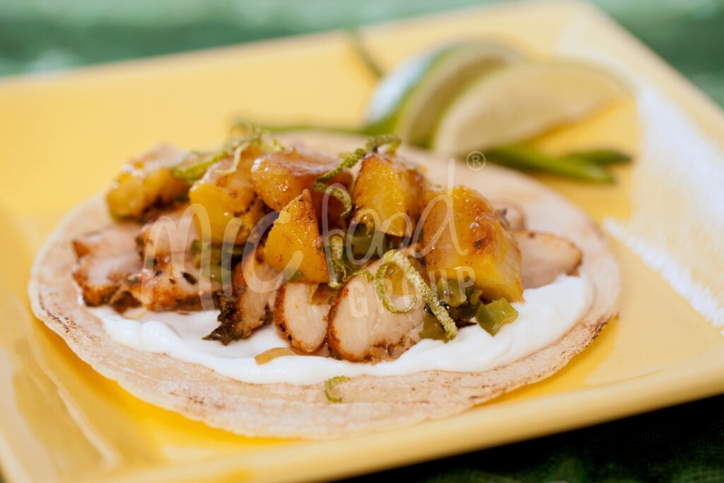 Jerk Chicken Tacos, Caramelized Plantains, Poblano Peppers And Onions